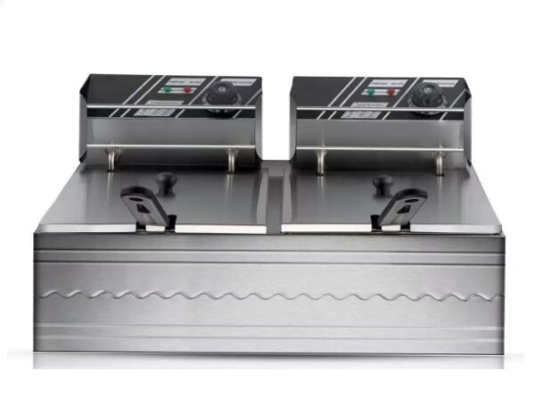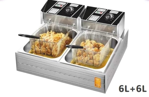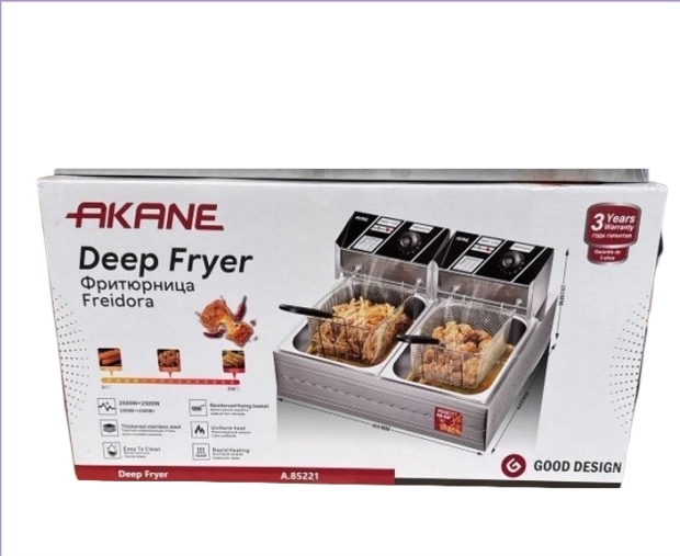 The AKANE Deep Fryer is a dual-basket appliance designed for home use. With a powerful 2000W+2000W or 2000W+1000W heating system, it is built with stainless steel for durability and easy cleaning.