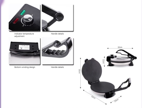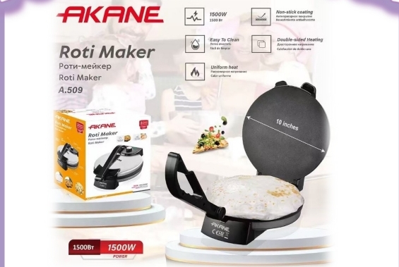 Experience the joy of fresh, perfectly cooked flatbreads with the AKANE Roti Maker This electric roti maker is designed to simplify your cooking process and deliver consistent, delicious results every time. With its powerful 1500W motor, it heats up quickly, saving you valuable time in the kitchen.