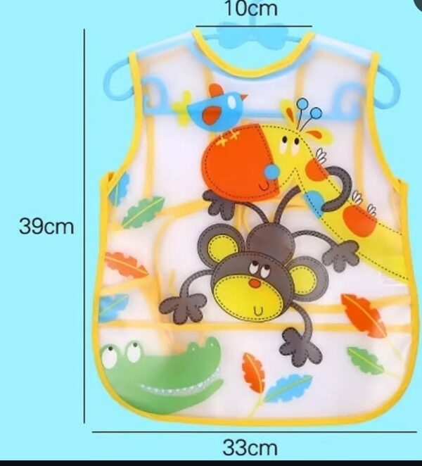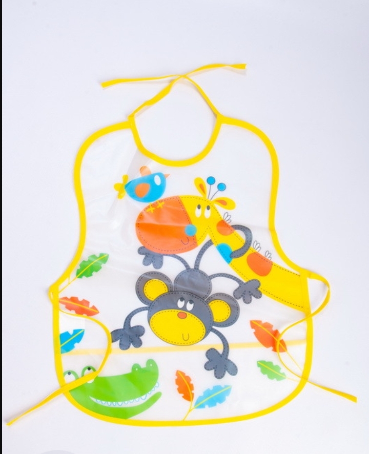This colorful and practical baby bib is designed to make mealtime fun and mess-free. The transparent, waterproof material protects your little one’s clothes from spills and stains, while the soft, absorbent fabric keeps them clean and dry. Featuring a playful jungle animal design with a monkey, giraffe, alligator, and fish, this bib is sure to delight your child.