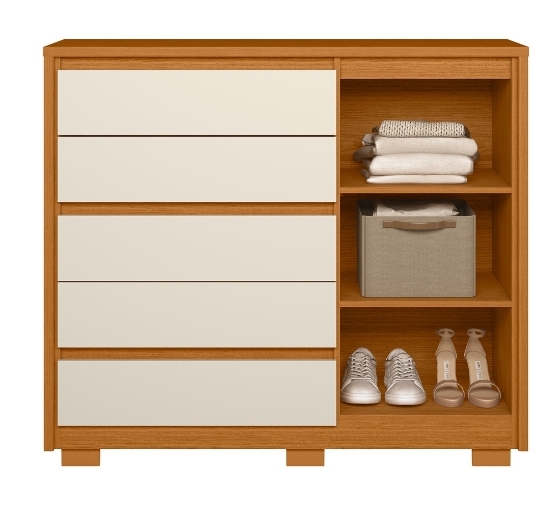 Spacious Dresser: Features 5 wide drawers equipped with telescopic slides for smooth, full extension and reliable, silent operation—perfect for all your clothing and linens.