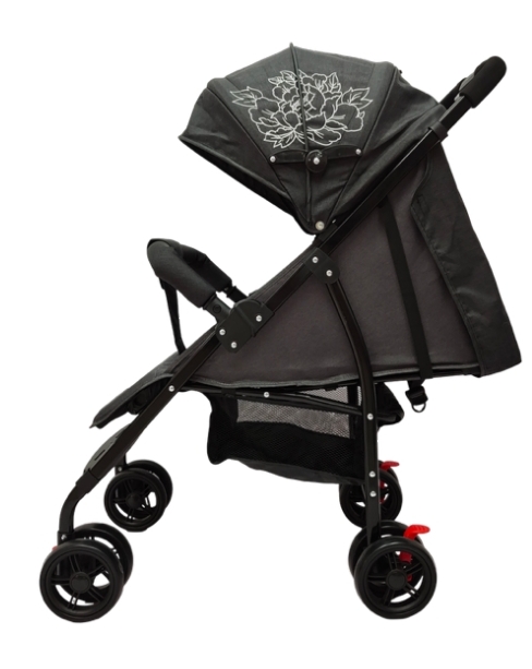Chic Design: The sleek red canopy with floral embroidery adds a touch of elegance, perfect for parents who love both function and fashion.