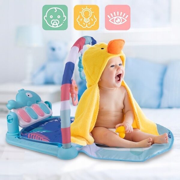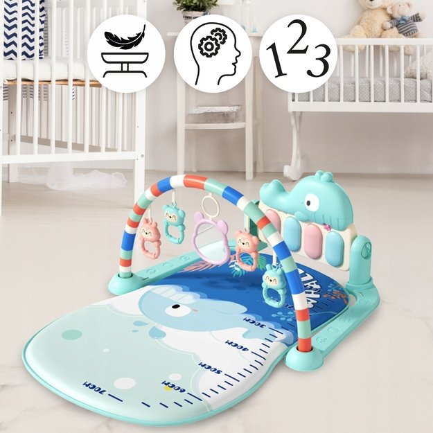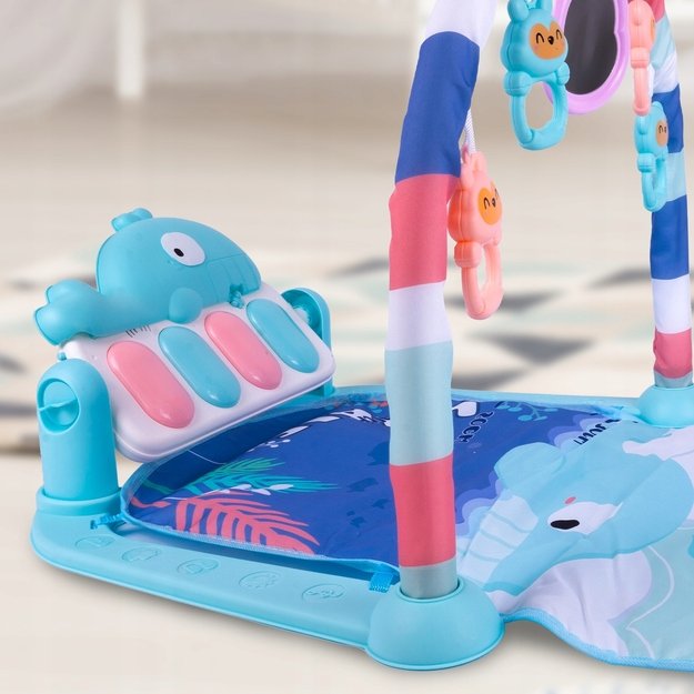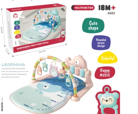 Introduce your little one to a world of fun and learning with this engaging baby gym. Designed to stimulate your baby’s senses and encourage early development, this play mat features a soft, comfortable surface for tummy time and playtime. The colorful arch with hanging toys provides visual and tactile stimulation, while the foot-activated piano keyboard helps develop motor skills and introduces your baby to music. The adorable elephant design and bright colors make it a perfect addition to any nursery. This versatile play gym is an ideal way to support your baby’s growth through interactive play.