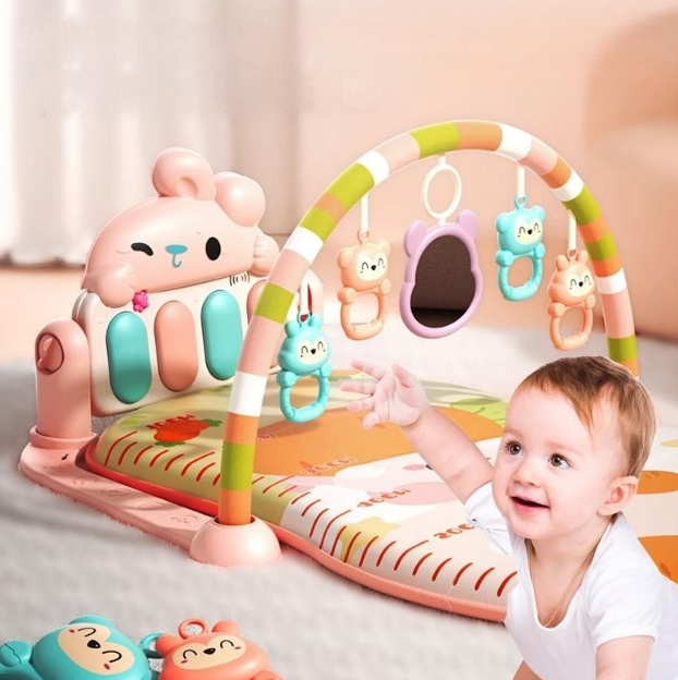 Introduce your little one to a world of fun and learning with this engaging baby gym. Designed to stimulate your baby’s senses and encourage early development, this play mat features a soft, comfortable surface for tummy time and playtime. The colorful arch with hanging toys provides visual and tactile stimulation, while the foot-activated piano keyboard helps develop motor skills and introduces your baby to music. The adorable elephant design and bright colors make it a perfect addition to any nursery. This versatile play gym is an ideal way to support your baby’s growth through interactive play.