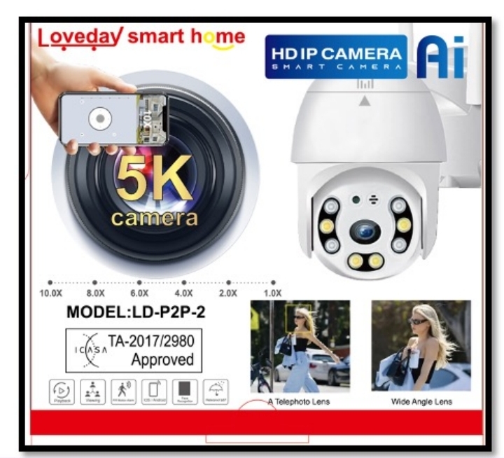 the Loveday Smart Home HD IP Camera, model LD-P2P-2. This is a 5K camera with a 10x zoom, designed for smart home security.