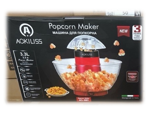 The Ackiliss ACL-9001 Popcorn Maker is an electric hot air popcorn machine designed for convenient and healthy snacking at home
