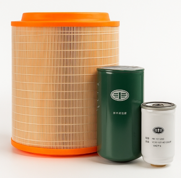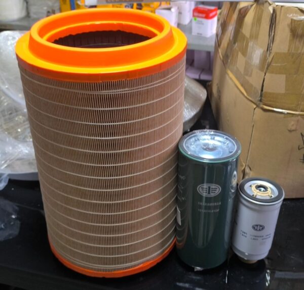 This service kit for the FAW 6DM2/6DM2J engine provides everything you need to keep your generator running at peak performance. Designed for durability and precision, each kit includes a high-quality air filter, along with essential oil and fuel filters. The large, heavy-duty air filter with its distinctive orange seal ensures your engine breathes clean air, while the smaller filters protect critical systems from contaminants. Maintain your generator reliability and efficiency with this comprehensive and convenient service solution.
