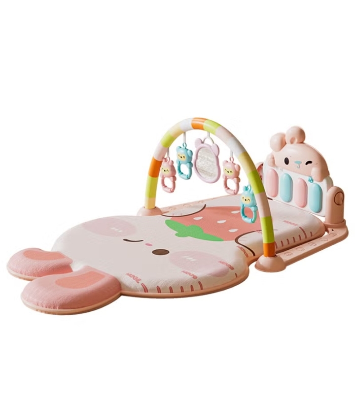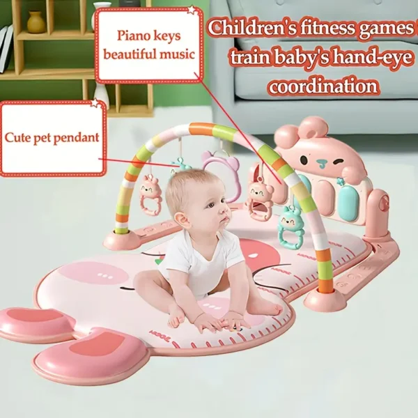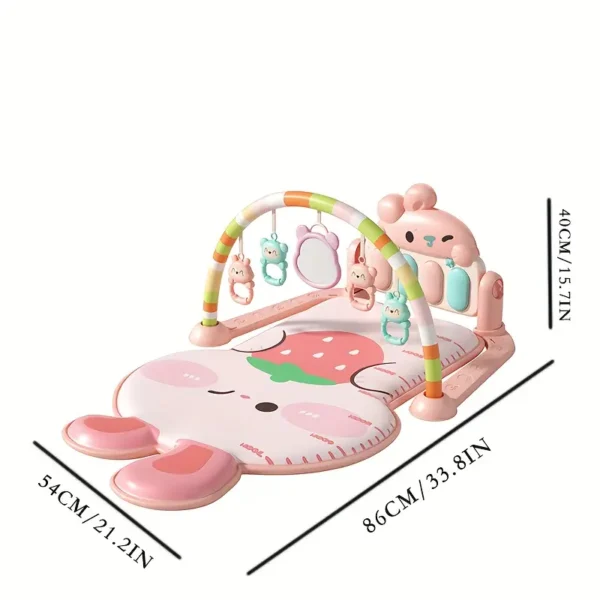 This adorable and engaging play mat is designed to stimulate your baby’s senses and promote early development. The mat features a soft, comfortable surface shaped like a pink rabbit, perfect for tummy time and play. An overhead arch with hanging toys encourages reaching and grasping, while the interactive kick-and-play piano at the base helps develop motor skills and introduces your little one to music.