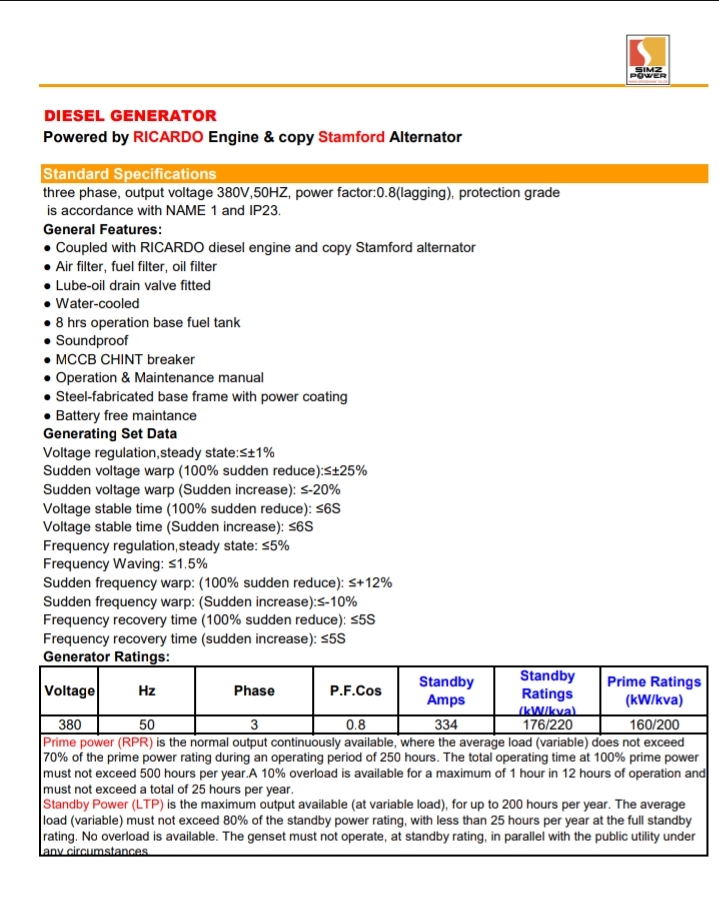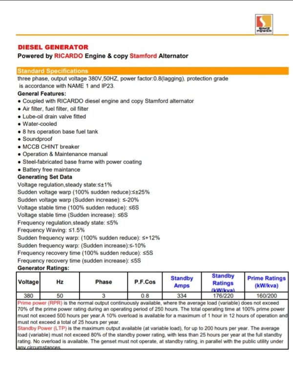 Introducing the VG200 Diesel Generator, a robust and reliable power solution designed to meet the demands of various industrial applications. Powered by a high-performance RICARDO engine and coupled with a top-tier Stamford alternator, the VG200 is engineered for durability and efficiency, ensuring seamless operation even in the most challenging environments.