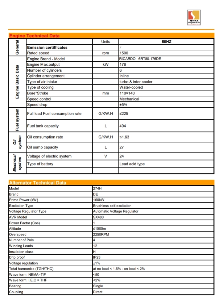 -Power Output: The VG200 delivers a maximum output of 200 kW, making it suitable for both standby and prime applications.